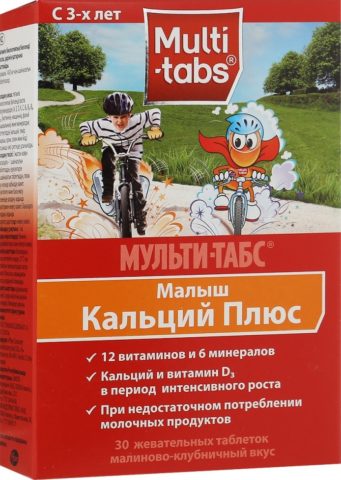 - Multi-tabs Kid Calcium +. Лекарството се предлага в таблетки за дъвчене с различни вкусове. Комплексът съдържа както витамини, така и минерали и е предназначен за деца на 2-7 години.