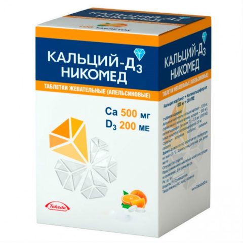 - Калций-D3 Никомед... Таблетките за дъвчене с вкус на портокал съдържат високи дози активни съставки. Добавки се предписват за деца на възраст от 3 години.