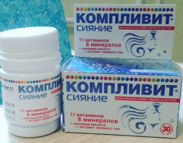 Сред основните компоненти на Complivit Radiance са биотин, калций, цинк и витамини. Приемът на хранителни добавки ускорява процеса на производство на колаген. Това има положителен ефект върху състоянието на косата и нокътната плочка. Добавката се приема по 1 таблетка на ден. Приемът се извършва по време на хранене.