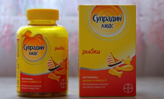 В допълнение към минералите и витамините, Supradin Kids съдържа лецитини. Тези вещества са необходими на детския организъм за осигуряване на метаболитните процеси на клетъчно ниво. Благодарение на лецитините се поддържа ефективното функциониране на мозъка и нервната система. Витаминният комплекс се произвежда както под формата на дъвчащи таблетки за смучене, така и под формата на сироп. Ползите от лекарството включват повишена физическа активност. По време на приемането си детето усвоява по-добре учебния материал и става по-устойчиво.Недостатъците включват вероятността от индивидуална непоносимост. Цената на опаковката варира от 500 до 750 рубли.
