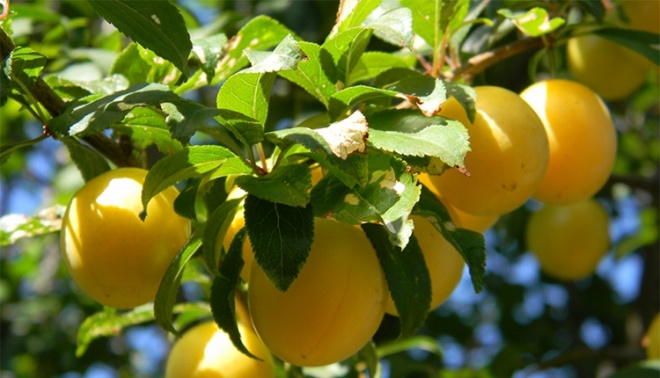 - Количеството захар и каротин в сливата е по-голямо, така че е по-сладко. В плодовете на черешовата слива има много калций и киселини.