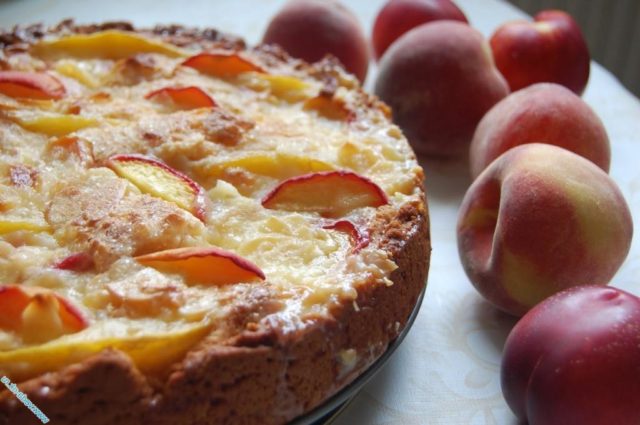 - Крехък... За да приготвите салатата, използвайте замразени или пресни парченца нектарин (4 чаши). Те са изложени в специална форма, поръсена със заместител на захарта и смляна канела. Овесена каша (70 г), орехи (2-3 супени лъжици), нарязани бисквити (една чаша и половина) и маргарин (2 супени лъжици) се смесват в дълбок съд. Сместа се разбива с миксер и се разпределя върху нектарините. Скарата се пече във фурната за 45 минути.