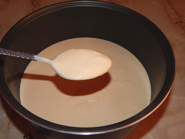 - Млякото се изсипва в купата на кухненския модул и се настройва на режим "задушаване" или "млечна каша". Необходимо е млякото да се готви в мултикукъра за около час при температура 100 ° C.