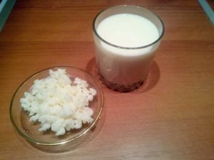 Млякото трябва да се приема натурално, не пастьоризирано и без мазнини - идеална е напитка с 3,2% масленост, а още по-добре е да вземете домашно прясно мляко. Гъба в количество от 2 чаени лъжички се изсипва с напитка в чиста кутия, врата се затваря с марля и те чакат един ден, за да ферментира пресен здравословен продукт.