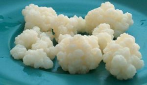 Млечната гъба е необичаен микроорганизъм, който се появява в процеса на взаимодействие между гъбички с дрожди и млечнокисели бактерии. Както можете да видите на снимката и видеото на млечната гъба, на външен вид тя прилича на варен ориз или извара, големите екземпляри наподобяват съцветия от карфиол. Обикновено гъбата има сферична форма и при добър растеж може да достигне 7 см в диаметър.