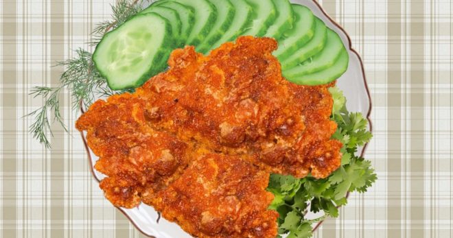 Изцедете водата и нарежете храната на парчета. Разбийте яйцата. Пригответе две купи, едната с яйца, другата с галета. Поставете хайвер в тиган, предварително обезкостен в яйце и галета. Пържете до омекване.