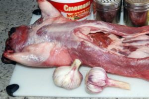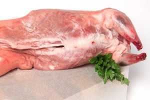 Прилича на трупа на нутрия заек, но свойствата на месото, миризмата и вкуса са значително различни. Мраморно месо - мастните тъкани са равномерно разпределени между мускулните тъкани. При приготвянето на вътрешностите се получава сочно, крехко ястие.