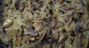 - Нарежете останалия лук на половин пръстени, запържете в растително масло до златисто кафяво, след това отстранете лука, леко запържете стомасите в останалото масло.