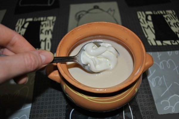 На повърхността на киселото мляко се образува жълтеникава или бяла пяна, в която е концентрирана по-голямата част от мазнината. Той е по-плътен, по-плътен от пяната, образувана от врящо мляко, сладникав и вкусен. Децата особено обичат да събират пяна.
