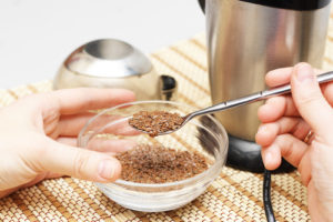 - Препечените съставки се смилат в кафеварка до средно смилане.