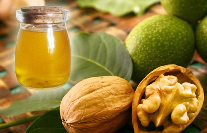 В домашната козметология има много рецепти за маски за лице и коса. Но това не е всичко. Ореховото масло за дъбене е ценно с това, че не само засилва производството на меланин, но и предпазва от дехидратация и изгаряния. Нанася се върху кожата преди и след излагане на слънце.