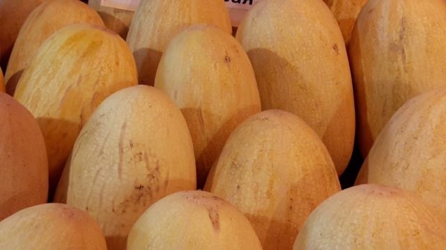 - Цвят и състояние на пъпеш на кожата... Зрелите и здрави плодове трябва да бъдат равномерно жълти или светлооранжеви, без кафяви или черни петна, без пукнатини или други повреди по повърхността, с тъмни ивици по кожата.