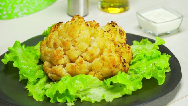 За печене съцветията трябва да бъдат подредени върху лист за печене, внимателно се заливат с масло, добавят се сол и други подправки. Във фурна, загрята до 200 градуса, ястието трябва да се пече около 20 минути - докато съцветията придобият приятен златист оттенък.