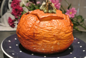 За тази рецепта се препоръчва да използвате тиквата като „саксия“, като в нея заредите печено или задушени зеленчуци - тогава те по-добре запазват всичките си полезни свойства и са наситени с аромат и вкус на тиква. Тиквата също се пълни с месо, риба, сирене или извара.