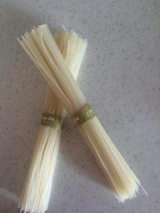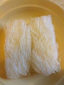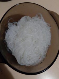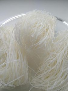 Това се дължи на факта, че сухите макарони наподобяват оризови юфка, но след готвене те стават полупрозрачни. Тези юфка са направени от нишесте от боб мунг (наричан още мунг боб).