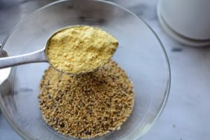 - чаена лъжичка накълцана подправка се смесва с 10 g редовен активен въглен;