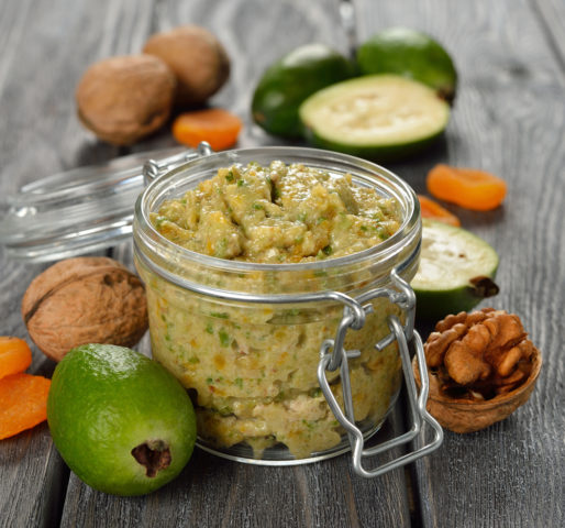 - Поради високото съдържание на йод, плодовата каша е особено препоръчителна за деца без това вещество. Елементът, който изгражда фейхоа, много по-лесно се усвоява от младото тяло и има положителен ефект върху развитието на щитовидната жлеза.