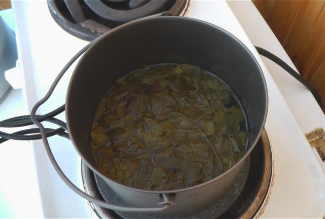 - голяма лъжица изсушени растителни листа се залива с 400 мл течност;