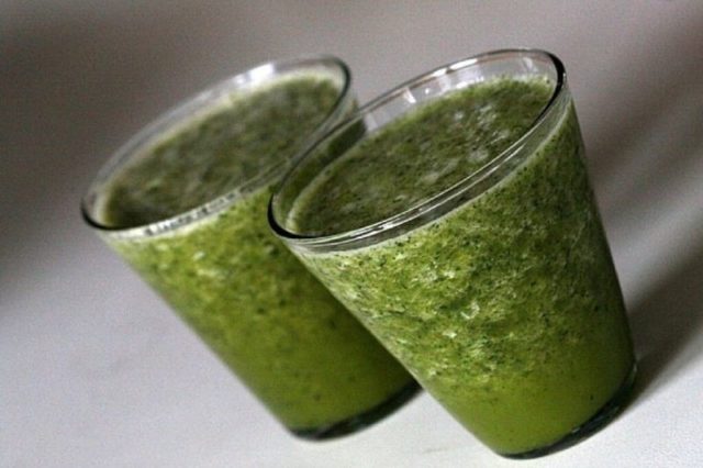 - пресните листа на растението се измиват и заливат с вряща вода и след това се втриват с хаванче или се прелистват през месомелачка;