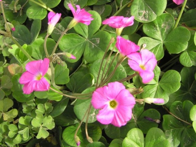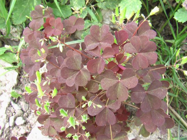 Четирилистният оксалис цъфти от юни до септември - Рожкова... Листата от този див сорт обикновено са с лилав оттенък. Расте много бързо във всяка област. Полезните свойства на рожков рогач са широко използвани от народната медицина.