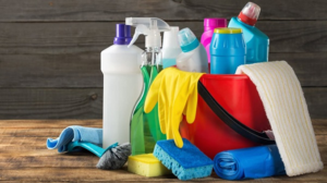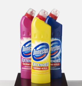 Recomenda-se trabalhar com anti-sépticos, como Domestos, somente com luvas de borracha. O cloro está presente na composição desses produtos químicos domésticos, que corrói a pele.