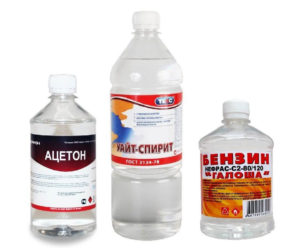 Um chumaço de algodão é umedecido com gasolina e a parte contaminada da roupa é enxugada até que as manchas marrons desapareçam completamente. O pano branco deve ser imediatamente removido da solução cáustica e enxaguado várias vezes.