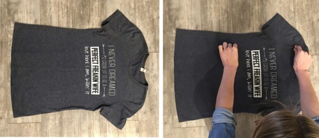 - Espalhe a camiseta passada sobre uma superfície dura de forma que a parte da frente fique embaixo.