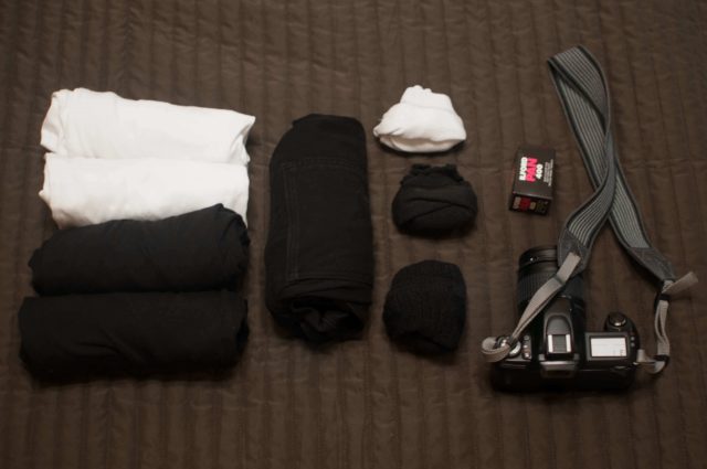Se as coisas estão no armário, é melhor empilhá-las. Rolar é outra opção. Isso economizará muito espaço em sua bolsa de viagem ou mochila, e suas camisetas não amassarão. Você deve estudar as nuances da dobra para usá-las posteriormente na prática.