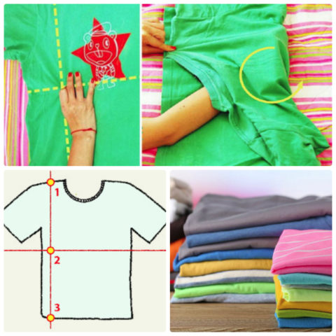 Usando este hack da vida, você pode dobrar a camiseta o mais rápido possível. Claro, inicialmente não levará dois segundos, mas muito mais tempo. Mas, tendo dominado as ações básicas, será possível dobrar as coisas sem muita dificuldade, sem medo de que se enrugem.