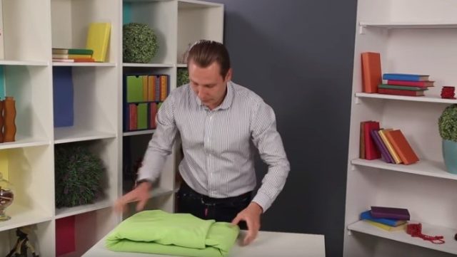 - Passe a capa de edredom a ferro, enrole-a várias vezes em um retângulo, endireitando as dobras. Dobre cuidadosamente em uma fronha.