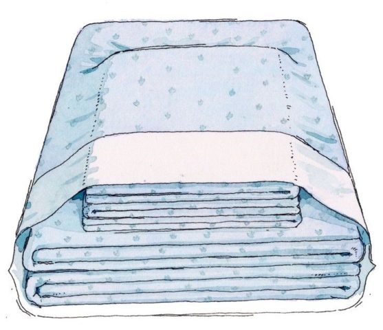 É muito conveniente dobrar a roupa de cama com um envelope, pois não ocupará muito espaço nas prateleiras de armazenamento.