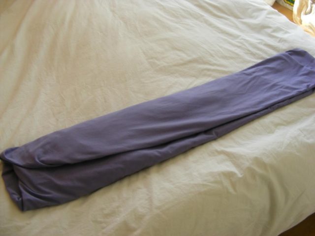 Você precisa dobrar ao longo do lado comprido - Todo o conjunto é enrolado em um rolo apertado e colocado em uma segunda fronha.
