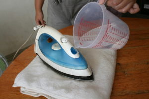 No primeiro caso, o ferro deverá ser aquecido até os valores máximos, deixado por 2 horas, depois reaquecido e liberado água e vapor sobre o recipiente preparado, após desligar o aparelho da tomada.