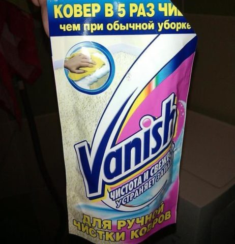 Dilua até obter uma consistência espessa e aplique na mancha - Ao limpar produtos de cores claras, use "Vanish" para carpetes de acordo com as instruções.