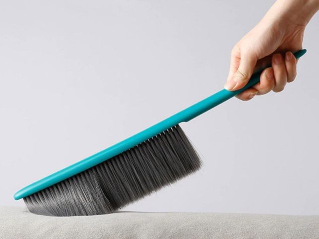 - De vez em quando, a colcha pode ser limpa suavemente com uma escova para roupas seca. Isso removerá a poeira, pelos e pelos.