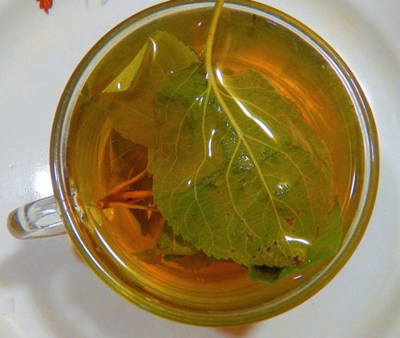 O produto é bebido para emagrecer. Para se livrar da insônia, você precisa beber um chá quente uma hora antes de ir para a cama. Pegue duas colheres de chá de matéria-prima e despeje água fervente sobre ela. A bebida é insistida por duas horas. Para melhorar o sabor, adicione pedaços de frutas frescas, raspas de limão. A folha da macieira pode ser combinada com chá preto e roseira brava.