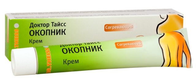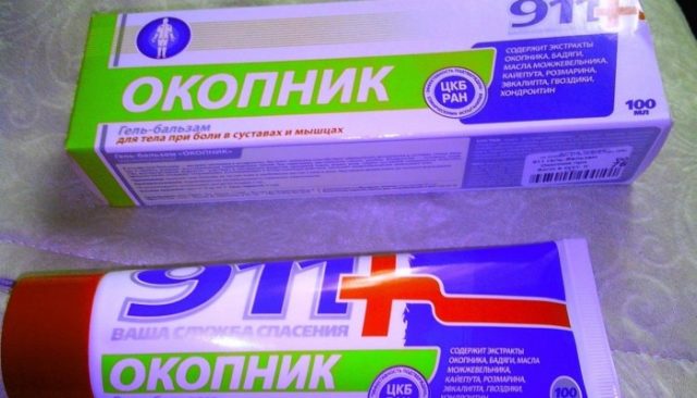 Gel "Comfrey 911" - um produto farmacêutico certificado contendo larkspur - «Comfrey Dr. Theiss"- creme com clorofila, óleos de pinho e milho, extrato de espora.