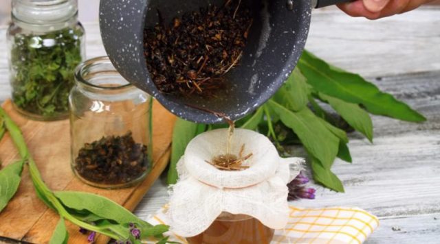 Um curativo ou um pedaço de gaze é umedecido em um caldo quente já feito e aplicado nas feridas por meia hora. A decocção de ervas ajuda a aliviar o desconforto, elimina o inchaço do tecido e acelera a regeneração.
