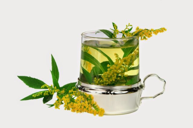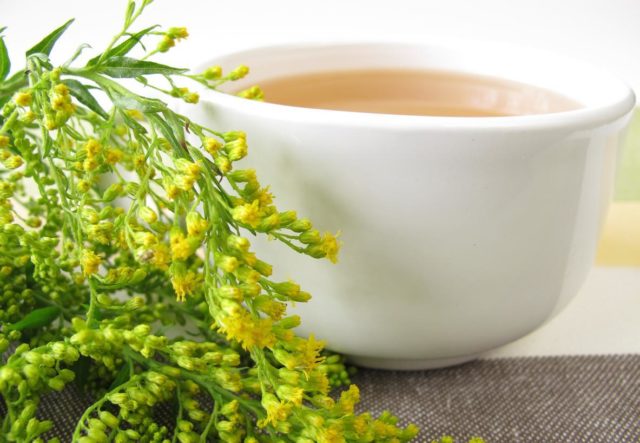 Para a preparação de chá medicinal 1 colher de sopa. eu. caules das plantas são derramados com 300 ml de água quente. Após 3-5 minutos, a bebida é colocada em xícaras. Ajuda a prevenir doenças do sistema urinário e fortalece o sistema imunológico. A ingestão regular de chá goldenrod reduz a probabilidade de pedras nos rins.