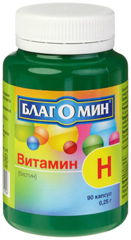 O custo das vitaminas Blagomin é de 130 rublos. 1 cápsula contém 150 mcg de biotina. A droga tem um efeito geral de fortalecimento do corpo e lida com o problema da queda de cabelo. O curso de admissão é de 1 mês.
