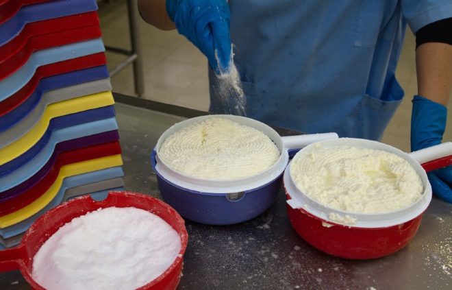 - Normalmente, o leite de vaca é tomado como base. Mas ovelhas e cabras servem. É aquecido para pasteurização a 95 0C.