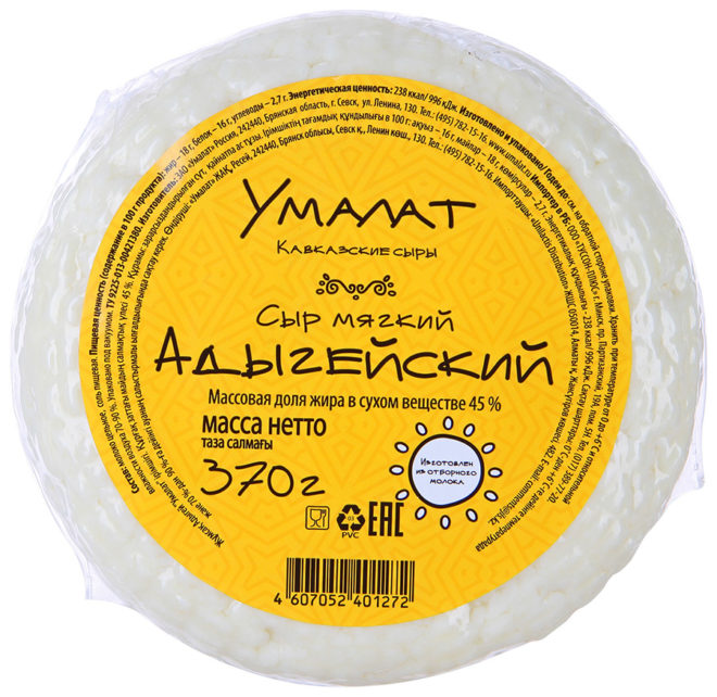 - Embalagem. Indica a data de fabricação e a data de validade. O recipiente deve estar intacto, vácuo. Se o queijo Adyghe não for fumado, o armazenamento não é superior a 15 dias.