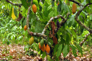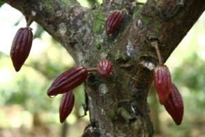 O maior produtor de pó é a República da Costa do Marfim. Ele está localizado na África Ocidental e é responsável por cerca de 30% da colheita mundial de valiosas matérias-primas. A árvore do chocolate fica muitas vezes ao lado de coqueiros, bananeiras, seringueiras ou abacateiros. Em condições climáticas favoráveis, a árvore é capaz de florescer o ano todo, e também tende a dar frutos o ano todo. Os frutos do chocolate são formados ao longo de sua vida, podendo atingir 30 cm de comprimento e pesar até 0,5 kg. O fruto é uma célula semi-oval alongada, que contém de 30 a 60 grãos. A colheita começa antes da estação das chuvas.