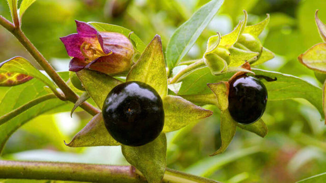 A beladona comum, ou beladona, é uma planta herbácea perene que pode atingir 1,5 m de altura. Os caules da planta são altos e retos, as folhas são oblongas ovais, verdes claras ou verdes acastanhadas, mais claras na parte inferior.