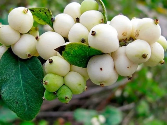 Um arbusto decíduo da família das madressilvas atinge até 3 m de altura, apresenta folhas ovóides ou ovais, verde-escuras, com borda sólida. Floresce com inflorescências rosadas e, no início do outono, aparecem bagas brancas em seu lugar. Os frutos da snowberry podem ser redondos ou ligeiramente achatados e alongados, dentro deles existem 1-3 sementes.