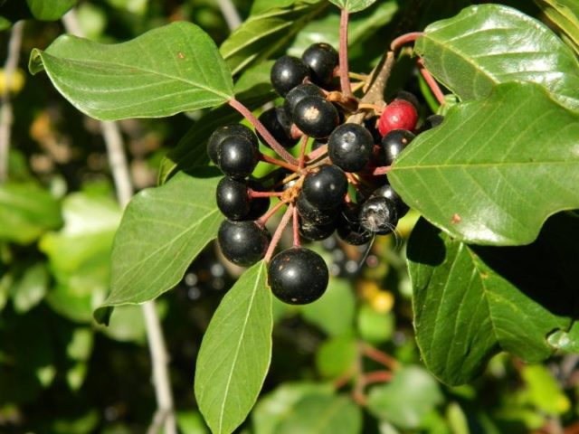 Um arbusto adulto semelhante a uma árvore pode atingir 7 m de altura. O tronco do espinheiro é liso, coberto com casca escura, as folhas são de forma elíptica com um bordo sólido. Buckthorn floresce com flores esbranquiçadas imperceptíveis.