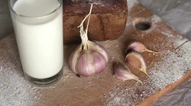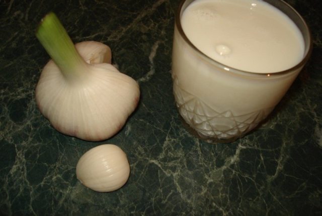 É necessário insistir no alho com leite por uma hora. O produto é bebido em 250 ml.