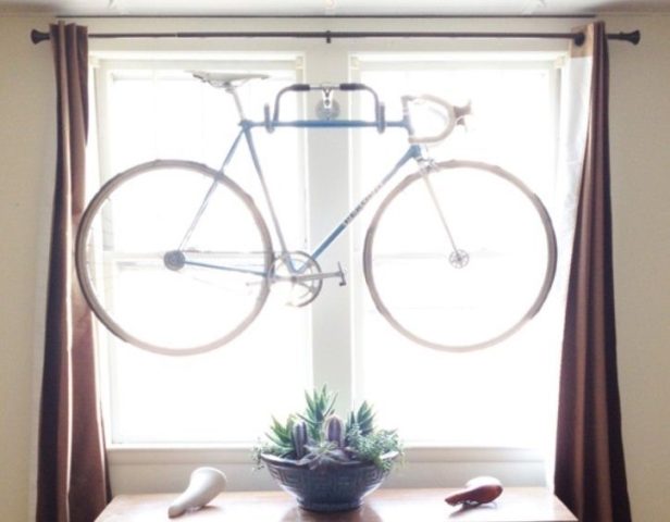 Bu depolama seçeneğinin dezavantajı, bisikletin kaçınılmaz olarak gün ışığının bir kısmını bloke etmesidir. Ek olarak, depolama yöntemi yalnızca hafif metal alaşımlardan yapılmış modeller için uygundur - pencereye ağır bir bisiklet asmamak daha iyidir.