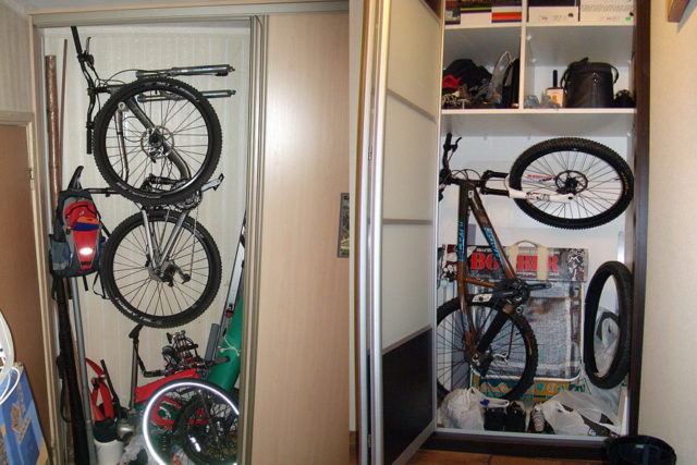 Bisiklet birkaç ay boyunca kışın dairenin dolabında duracağından, diğer nesnelere - aletler, boya kutuları, katlanır merdivenler - erişimi engellemeyecek şekilde konumlandırılmalıdır. Aracı kilerde güvenli bir şekilde sabitlemek önemlidir, eğer bisiklet düşerse ve yakındaki raflara dokunursa, düzeni sağlamak uzun zaman alacaktır.