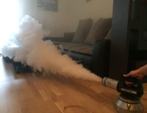 Bu yöntem en etkili yöntemlerden biridir, ancak aynı zamanda çok pahalıdır. Kuru sis, özel bir buhar jeneratörü ile ısıtılan ve odanın tüm alanına parçacıklarla püskürtülen bir süspansiyondur. Madde, odanın yüzeylerindeki en küçük çatlaklara ve yarıklara bile nüfuz eder ve hoş olmayan kokuları güvenilir bir şekilde giderir, çünkü molekülleri basitçe yok edilir. Kuru sis kullanılırken, pencereler ve kapılar sıkıca kapatılmalıdır, böylece madde buharlaşmaz, oda işlem gördükten sonra havalandırma yapılır.
